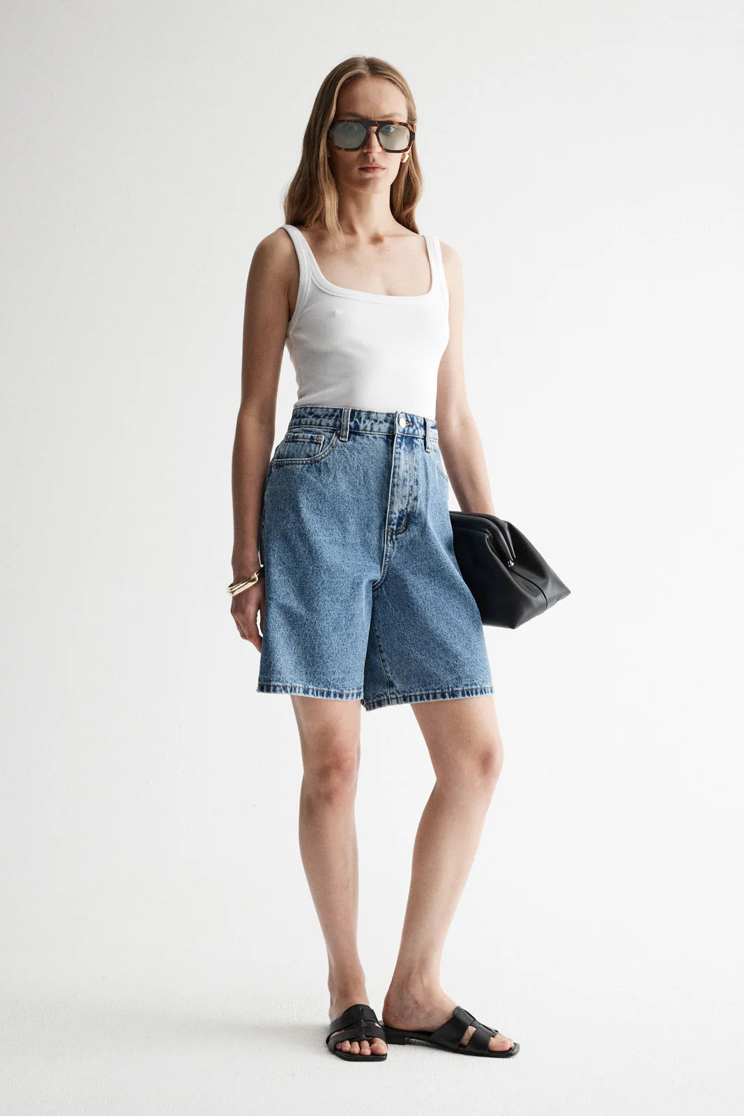 Our best-selling jeans in a summer style, the Odin Short is our new denim staple. Made of 100% cotton in our Trinity Blue wash, the Odin Short is cut to a high waisted fit with button and zip fly, classic 5-pocket styling, and a relaxed, wide leg silhouette. Sitting just above the knee, the Odin Short pairs perfectly with our range of premium basics.