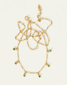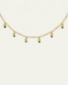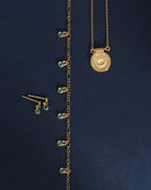 Crafted from 18k gold vermeil, the Ceres Necklace features five green onyx pendants suspended from a fine Figaro chain. Named after the Roman goddess of prosperity and renewal, this station necklace represents abundance, strength, and transformation.