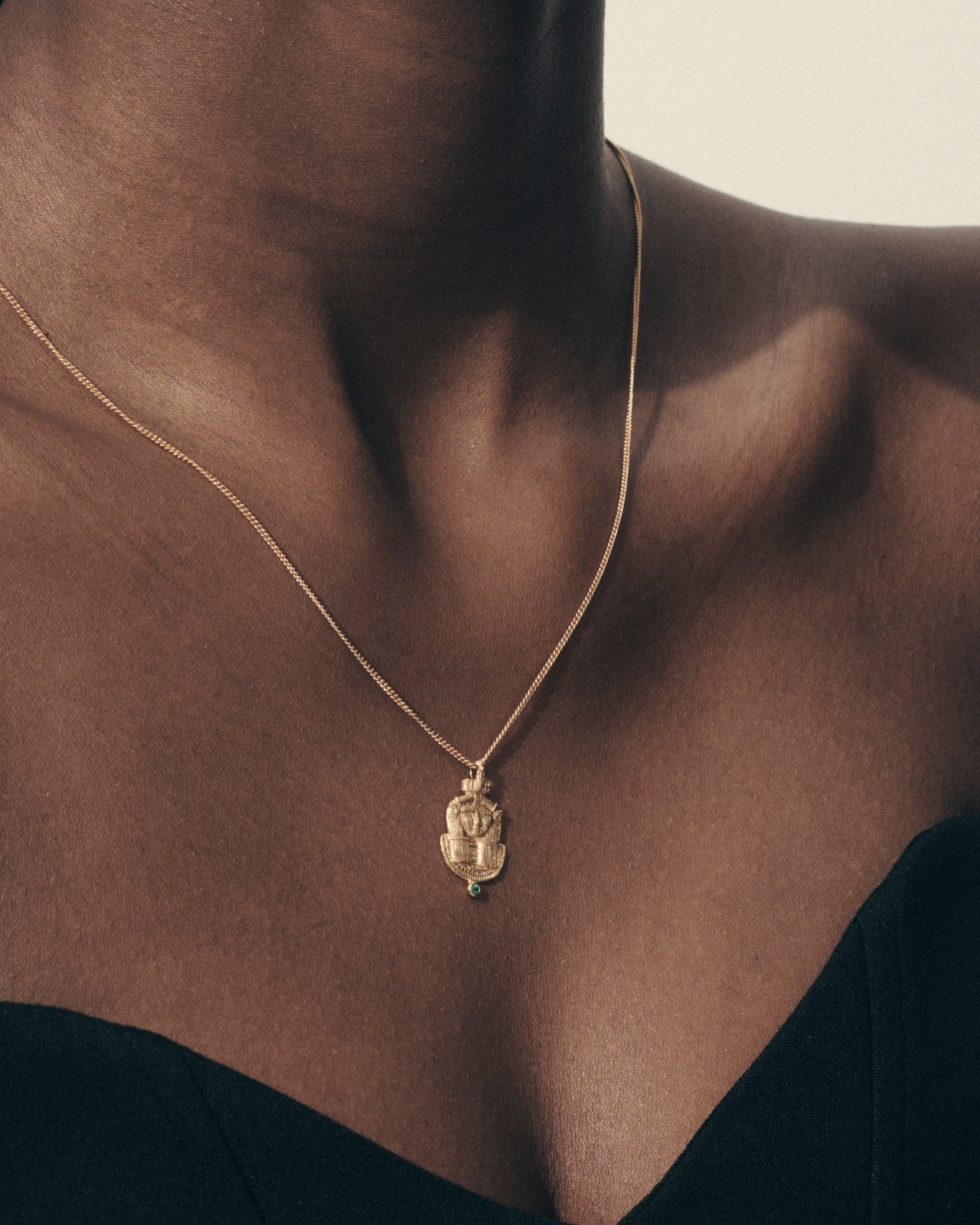 Amplified by a vibrant emerald, the Dendera Necklace is an embodiment of her sacred essence.