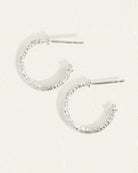 Formed of recycled sterling silver, these small hoop earrings are inspired by the raw power of molten earth. Their richly textured surface and compact size are perfect for adding depth to an ear stack.