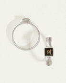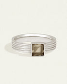 Echoing the minimalist aesthetics of the ancient Spartans, this recycled silver solitaire ring features a textured band dominated by princess-cut smoky quartz.