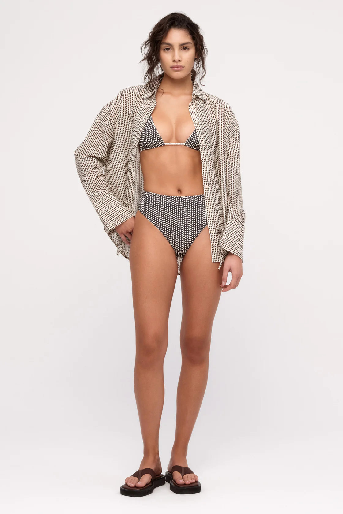 A relaxed-fit shirt crafted from a soft, lightweight cotton–silk blend with a delicate spot print. Featuring long sleeves, a classic collar and cuffs, a centre-back seam, and a flattering longer back hem, it’s finished with a centre-front button closure and branded corozo buttons at the cuffs.