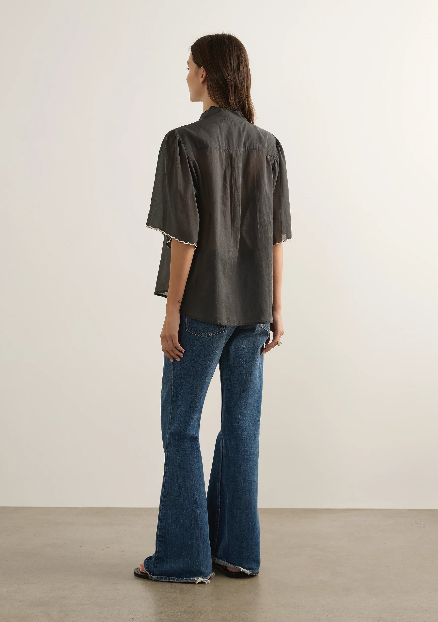 - Scollop embroidery detail along neckline and sleeve