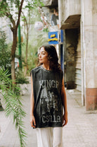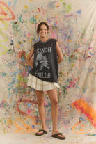 Cut-off sleeves and an oversized fit lend it that lived-in, borrowed-from-the-boys feel, perfect for pairing with crochet flares, mini skirts or sun-faded denim.