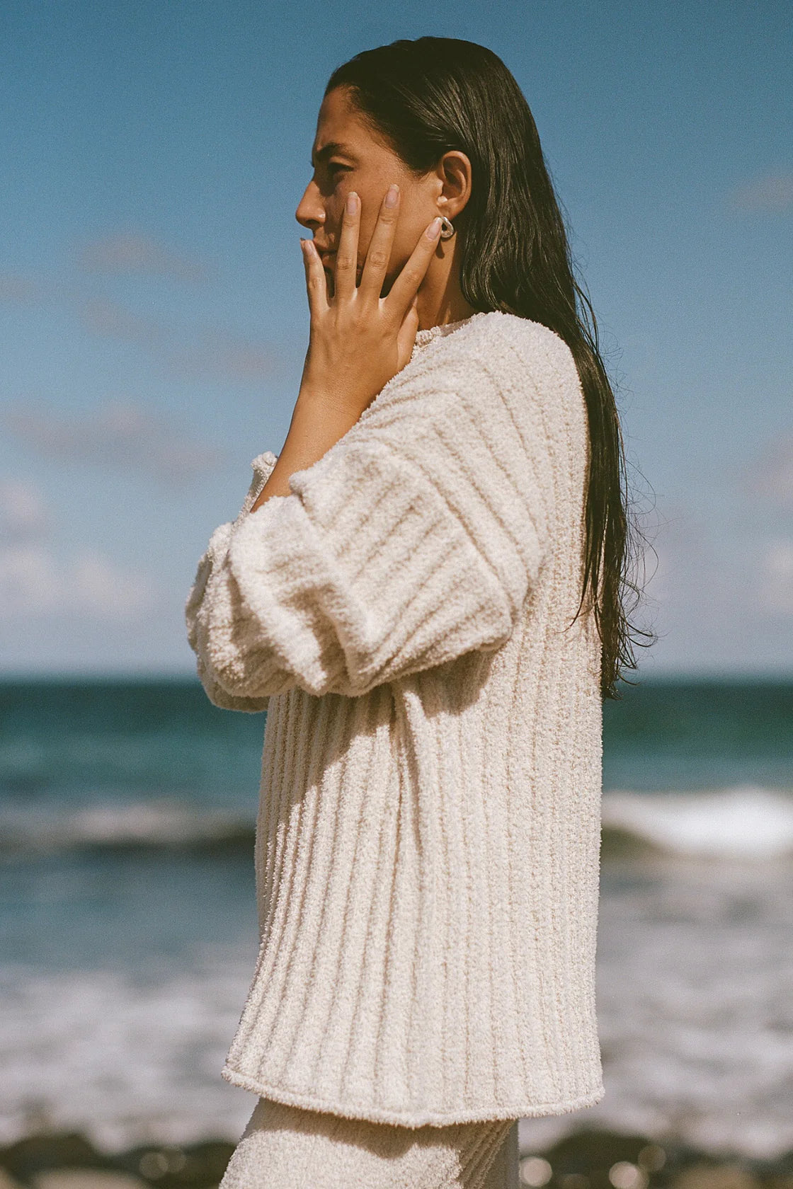 Zulu & Zephyr Textured Stripe Knit Tunic Jumper Coconut
