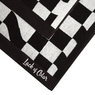 - Chequer jacquard woven pattern with machine embroidered logo