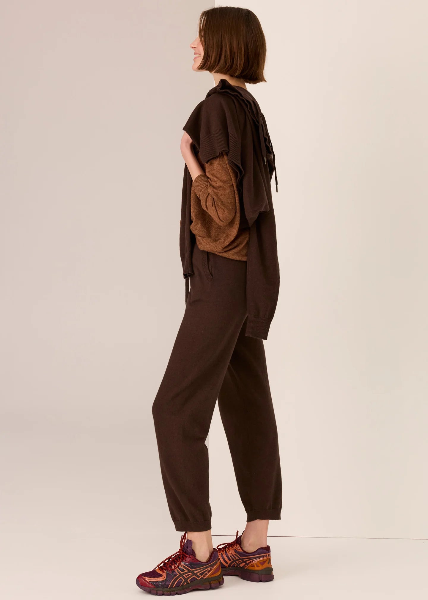 -Tapers in at the ribbed hem.